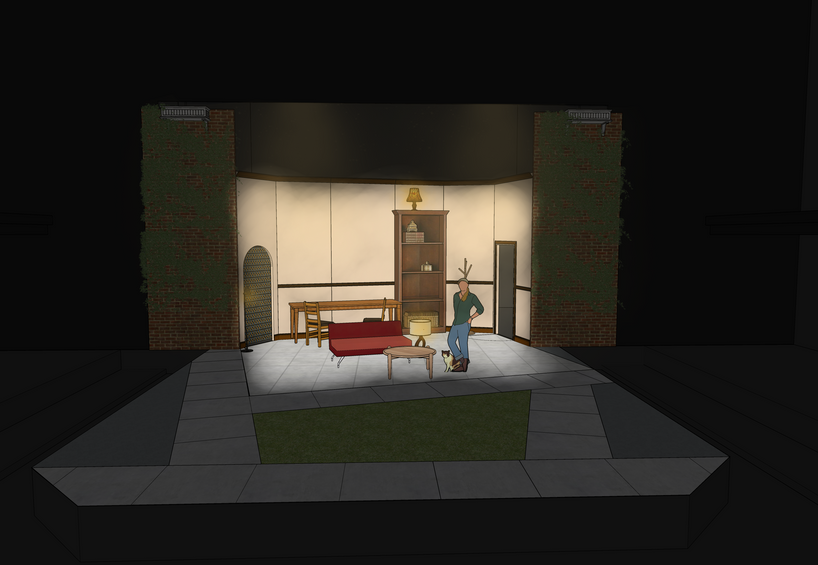 Stop Kiss is a nonlinear period piece about how a violent hate crime impacts two women on the cusp of a romantic relationship in 1990s New York City. My design aimed to highlight the “reality” of the relationship between Callie and Sarah in her apartment prior to the accident, and the traumatic dissociation of the events outside of the apartment after, while uplifting the director’s thrust-style blocking. I wanted to create a lived-in, almost 1960s era apartment that had been co-opted by a young woman in the 1990s, with the deck paint creating a fractured sense of New York, all centered around the park where the attack took place.